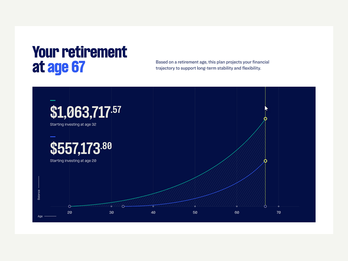 TIAA has spent more than a century helping people achieve financial security, serving millions of educators, healthcare professionals, and public servants. Yet retirement planning—particularly annuities and lifetime income—remains complex, intimidating, and poorly understood by many of the people who need it most. As more households face the risk of outliving their savings, the challenge was not simply to modernize TIAA’s website, but to transform how people understand, engage with, and act on long-term financial decisions. The design of the refreshed experience focused on replacing fragmentation and overload with clarity, guidance, and trust. TIAA’s digital ecosystem was restructured around education rather than promotion—helping users meet the information at their own level, progress at their own pace, and understand not just what options exist, but how those choices could shape their future. Complexity was not removed, but translated: dense financial concepts were broken into interactive, digestible experiences that balanced rigor with approachability. A core focus was the Lifetime Income experience, where interactive educational flows, calculators, and data visualizations allowed users to model real retirement scenarios and understand the role annuities could play over time. By bringing data to life and emphasizing outcomes over jargon, the platform reframed TIAA as a long-term partner rather than a product provider—supporting confidence, informed decision-making, and sustained engagement. The resulting system significantly reduced redundancy across the site while improving discoverability, comprehension, and performance. Enrollment starts increased, engagement deepened, and the platform established a scalable foundation for future growth. More importantly, TIAA.com evolved into a trusted digital environment designed to help people navigate one of the most consequential decisions of their lives with clarity and confidence. - Credits: Jeremy Grant, Design Director Ryan Fan, Design Chaiun Oh, Design Ibrahim Noon, Motion