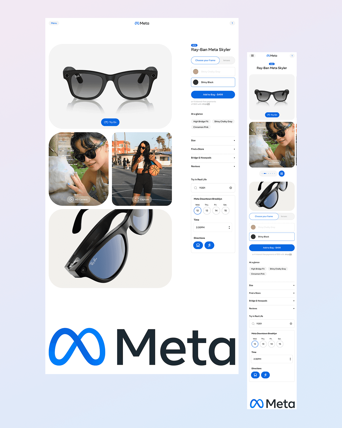 Meta approaches commerce differently than most brands. Rather than treating their digital storefront as a point of transaction, they see an opportunity to position themselves as a gateway into emerging forms of connection—introducing people to the possibilities of things like AR, VR and emerging tech before asking them to buy. Leading design, I guided the experience away from feature comparison and toward exploration, reframing products like Meta Ray-Ban and Meta Quest as entry points into new modes of seeing, sharing, and interacting. The work focused on shifting users out of a pro-and-con mindset and into a space of curiosity and imagination. Meta.com was designed as an immersive journey—one that helped users understand what these technologies could mean in their own lives, while connecting seamlessly into Meta’s broader retail and post-purchase ecosystem. To support this shift, I led the development of an engagement framework structured around five progressive stages: See it, introducing relatable use cases; Feel it, personalizing experiences to individual contexts; Dream it, clarifying value and reducing friction; Share it, integrating creator and community perspectives; and Do it, optimizing activation and conversion. This structure allowed inspiration and commerce to work in concert rather than in tension. The resulting platform aligned brand expression, storytelling, and performance into a cohesive system—one that encouraged return, supported long-term engagement, and positioned Meta.com not simply as an e-commerce destination, but as a dynamic hub for discovering the future of digital interaction. - Credits: Jeremy Grant, Design Director Roman Koscianski, Design Ibrahim Noon, Motion